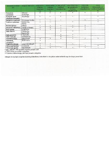 Fásításra, növénytelepítésre javasolt őshonos növények jegyzéke