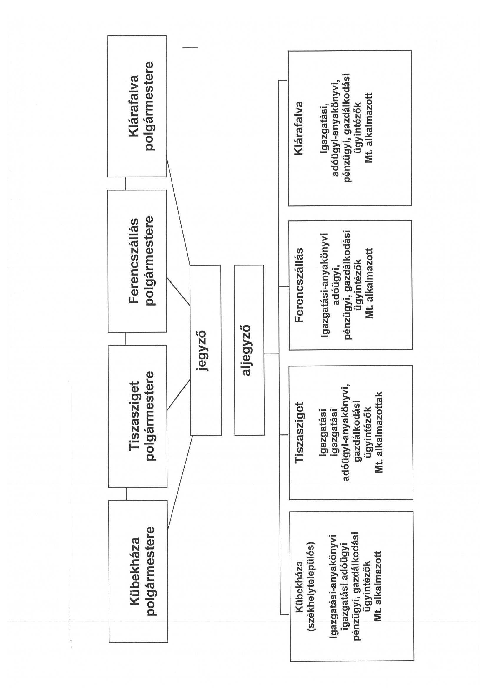 34. § (1) A Képviselő-testület Kübekháza, Ferencszállás és Klárafalva Községi Önkormányzat Képviselő-testületével az igazgatási feladatainak ellátására a Kübekházi Közös Önkormányzati Hivatalt alapította és tartja fenn. A Kübekházi Közös Önkormányzati Hivatal Szervezeti és Működési Szabályzatát a rendelet 2. függeléke tartalmazza.
