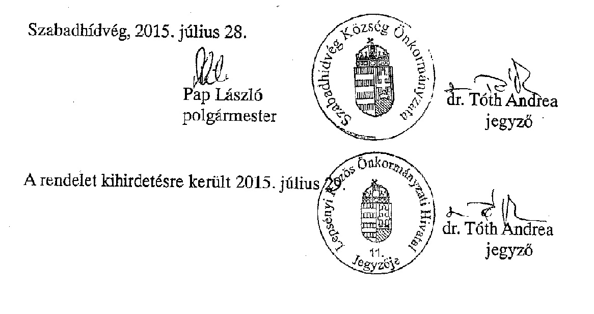 Szabadhídvég Község Önkormányzat Képviselő-testületének 11/2015 (VII.29.) önkormányzati rendelete