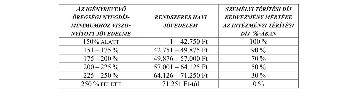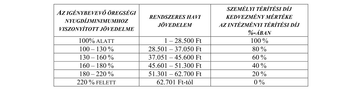 (2) Öttevény község közigazgatási területén a személyi térítési díjak megállapításánál a kedvezmény mértéke az Szt. 92. § (2) bekezdés f) pontja és az Szt. 115. § (3) bekezdése alapján: