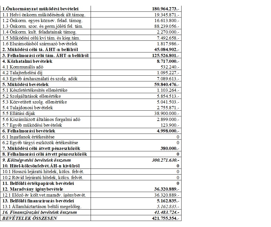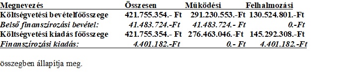 b) külső finanszírozására szolgáló finanszírozási bevétel összege: 0 Ft.