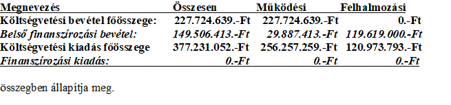 b) külső finanszírozására szolgáló finanszírozási bevétel összege: 0 Ft.