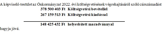 a 2022. évi költségvetés végrehajtásáról és a vagyonról (zárszámadásról)