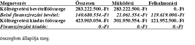 b) külső finanszírozására szolgáló finanszírozási bevétel összege: 0 Ft.