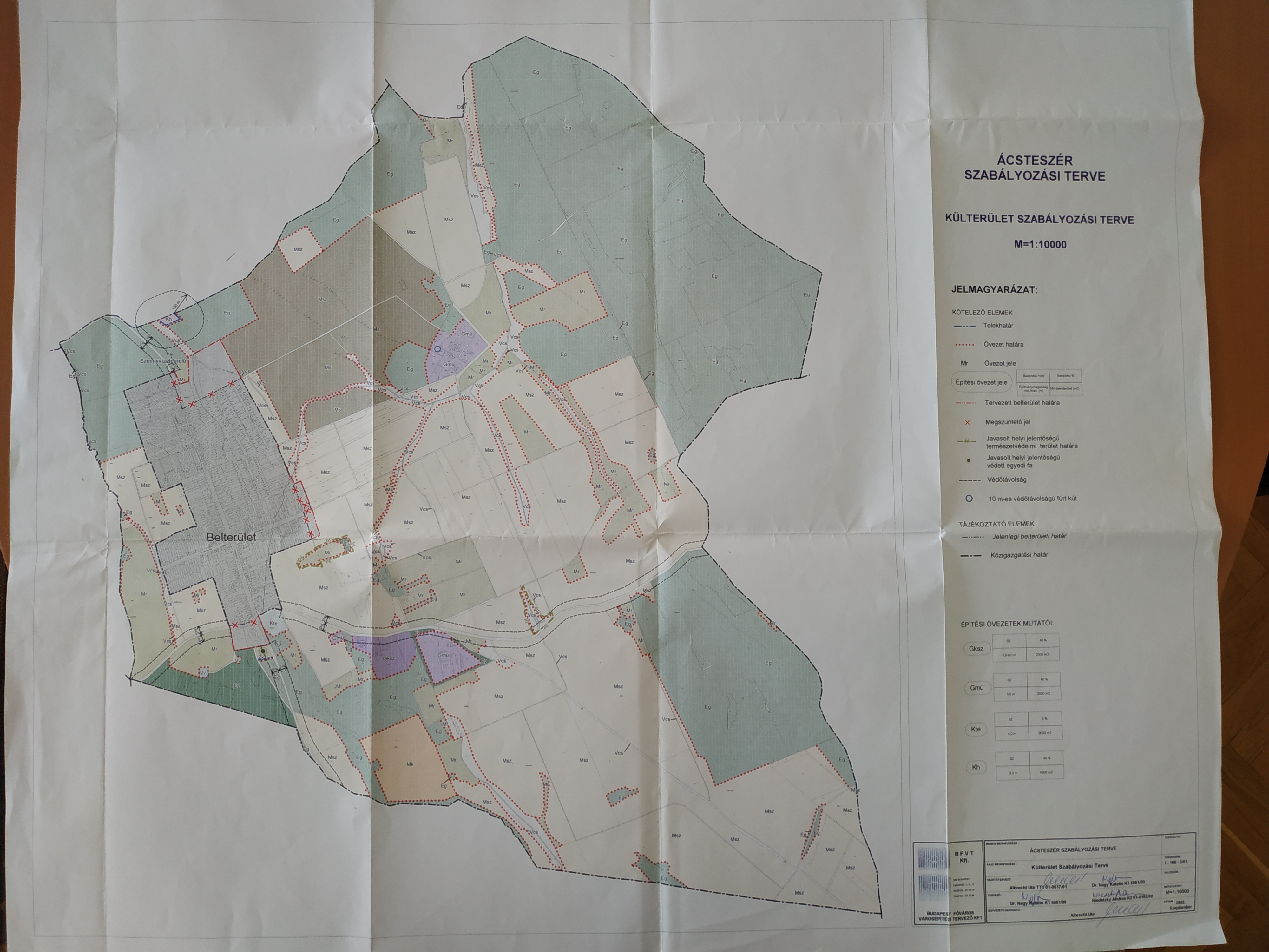 - a Külterület Szabályozási Terve című M=1:10000 léptékű tervlapot