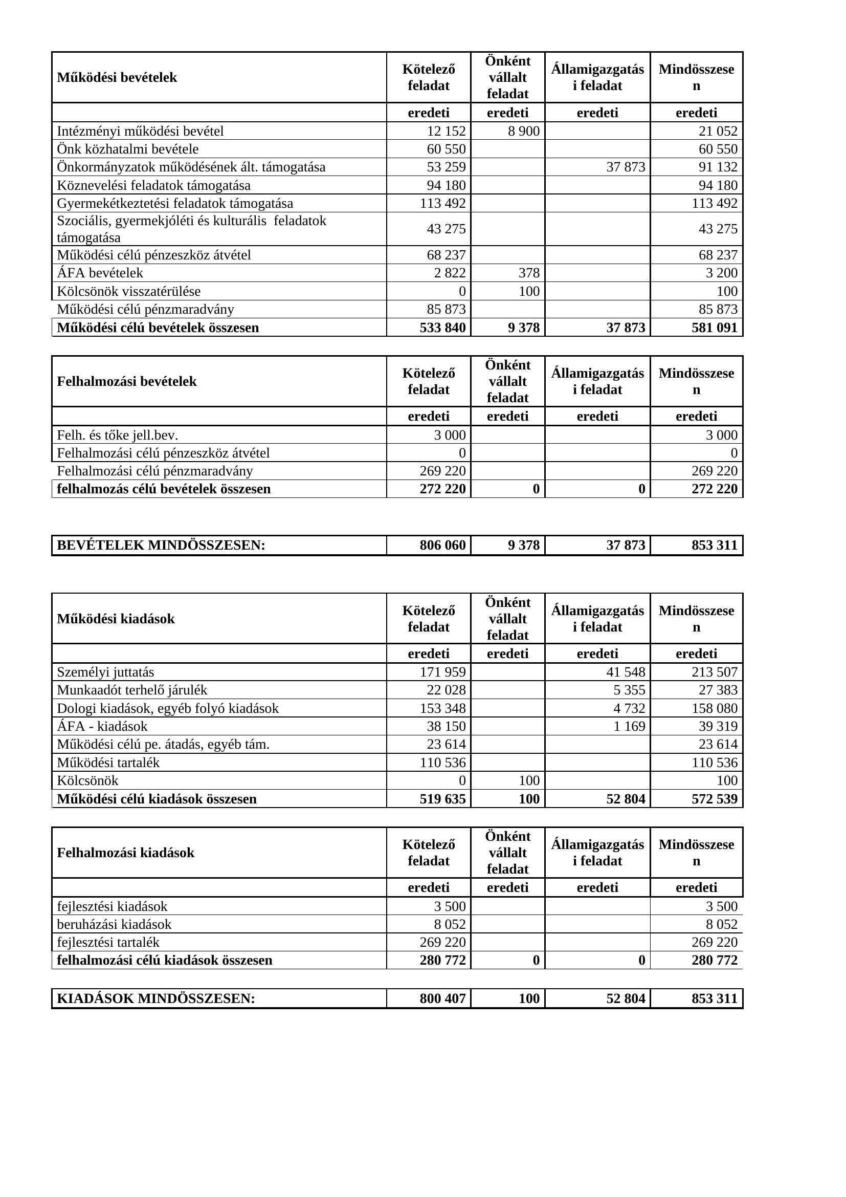 Az önállóan működő és gazdálkodó és részben önállóan működő és gazdálkodó költségvetési szervként működő intézmények külön-külön egy-egy címet alkotnak. Az önkormányzat költségvetésében szereplő nem intézményi kiadások külön címet alkotnak.