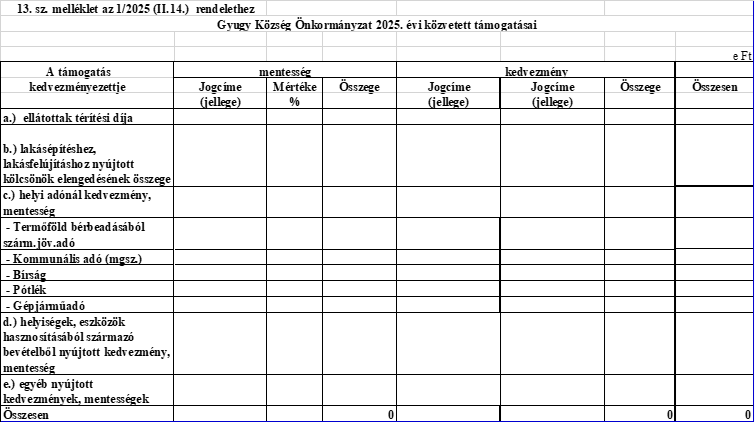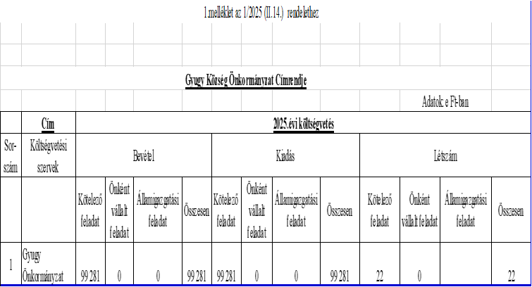 Hatályos: 2025. 02. 15- 2025. 11. 25Gyugy Község Önkormányzata Képviselő-testületének 1/2025. (II. 14.) önkormányzati rendelete