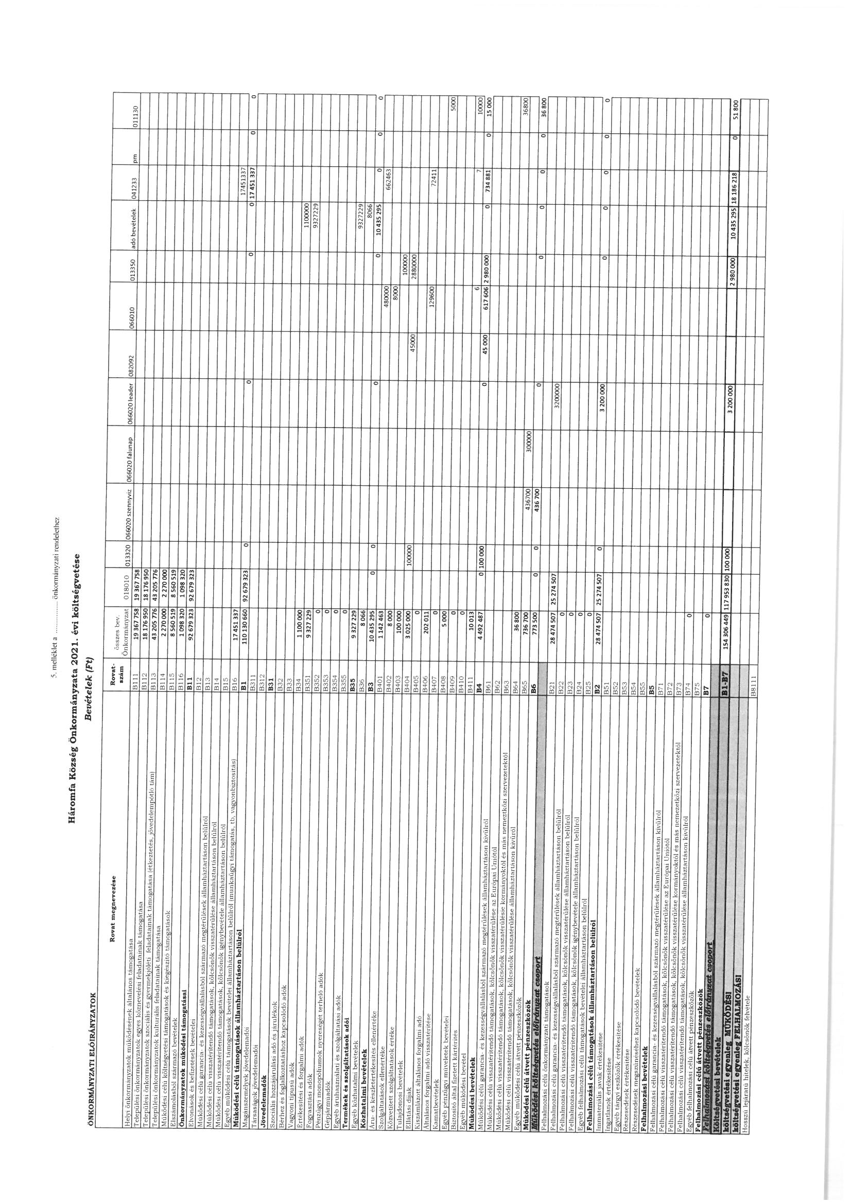Háromfa Község Önkormányzata 2021. évi költségvetése |
