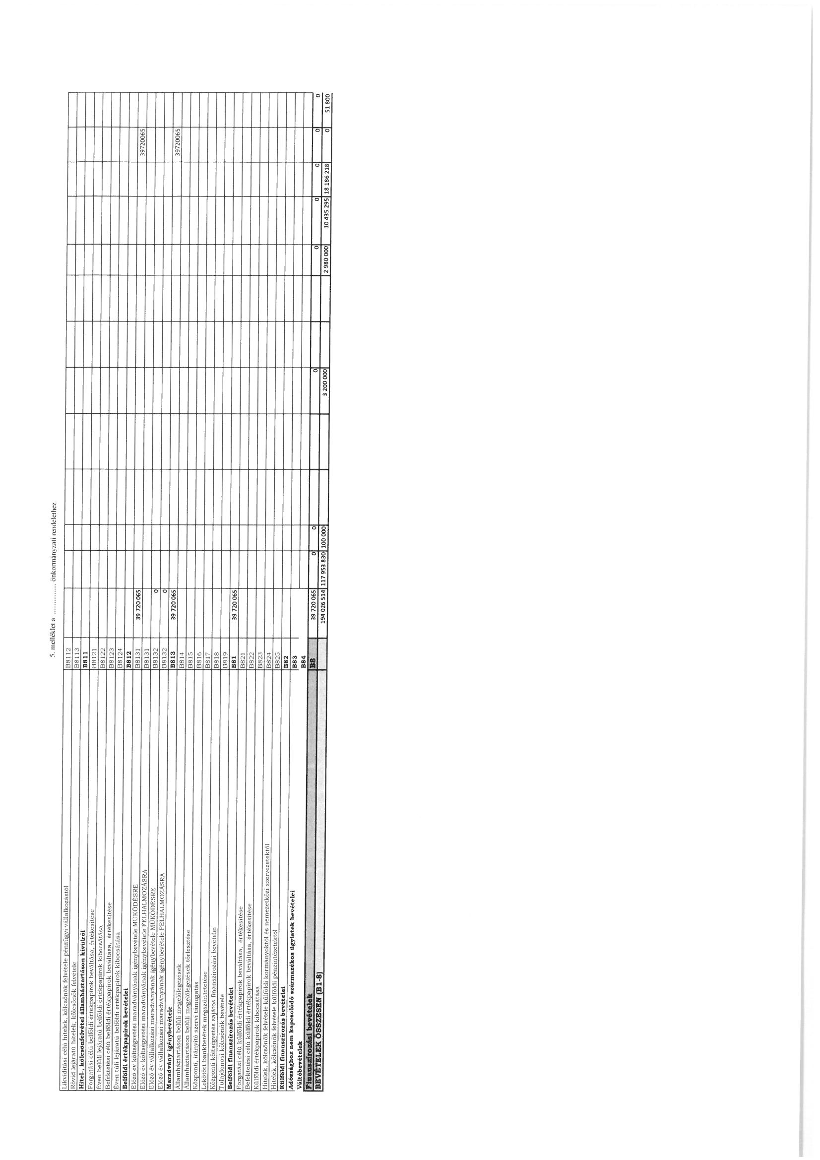 B8. Finanszírozási bevételek |