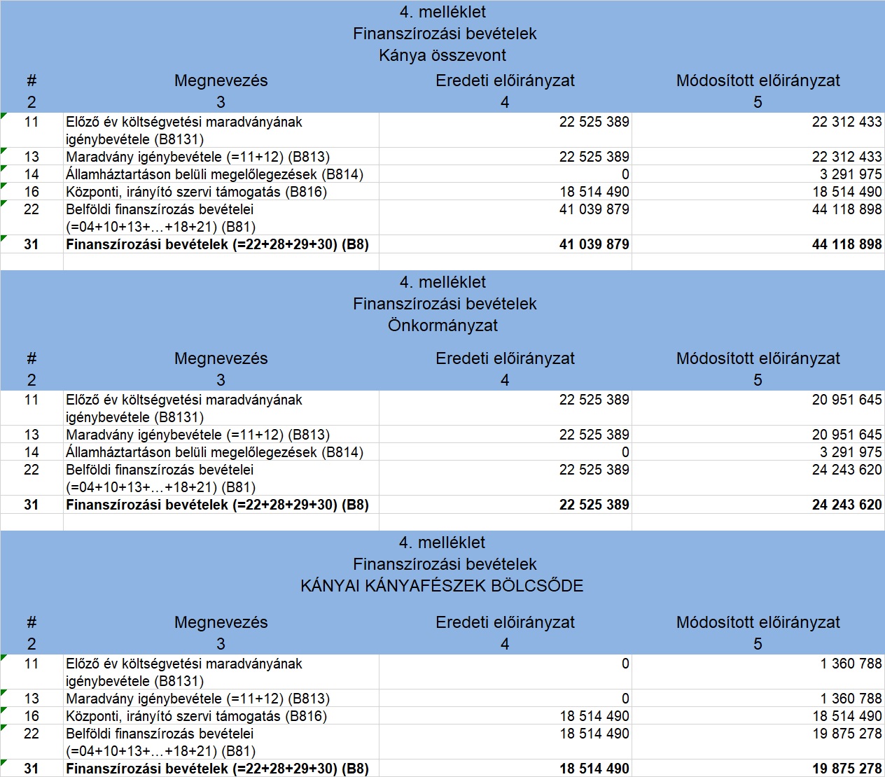 (4) A Kánya Községi Önkormányzat 2021. évi költségvetéséről szóló 2/2021. (III.1.) önkormányzati rendelet 4. melléklete helyébe a 4. melléklet lép.