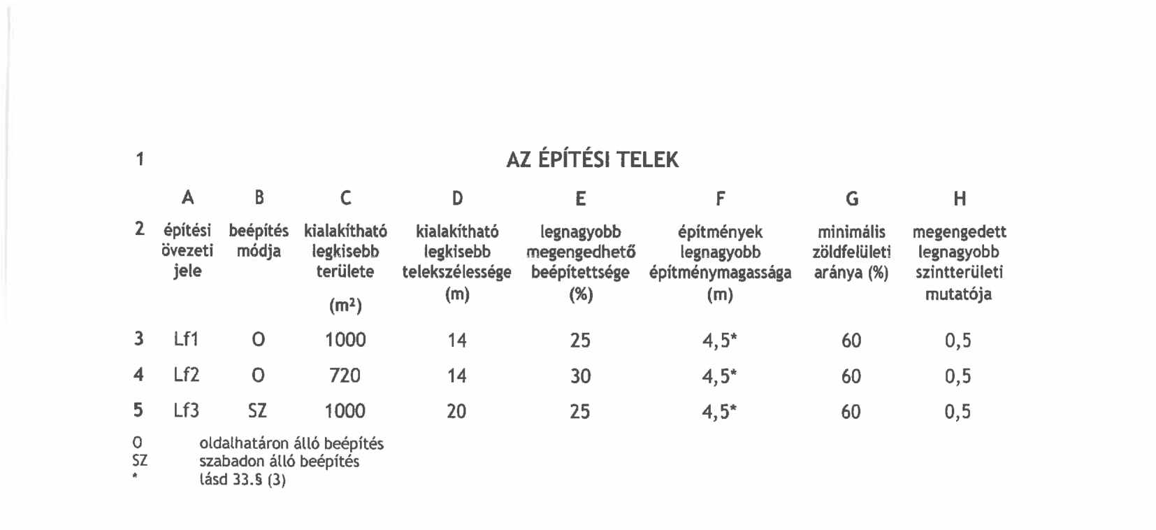 g) megengedett szintterületi mutató 0,02