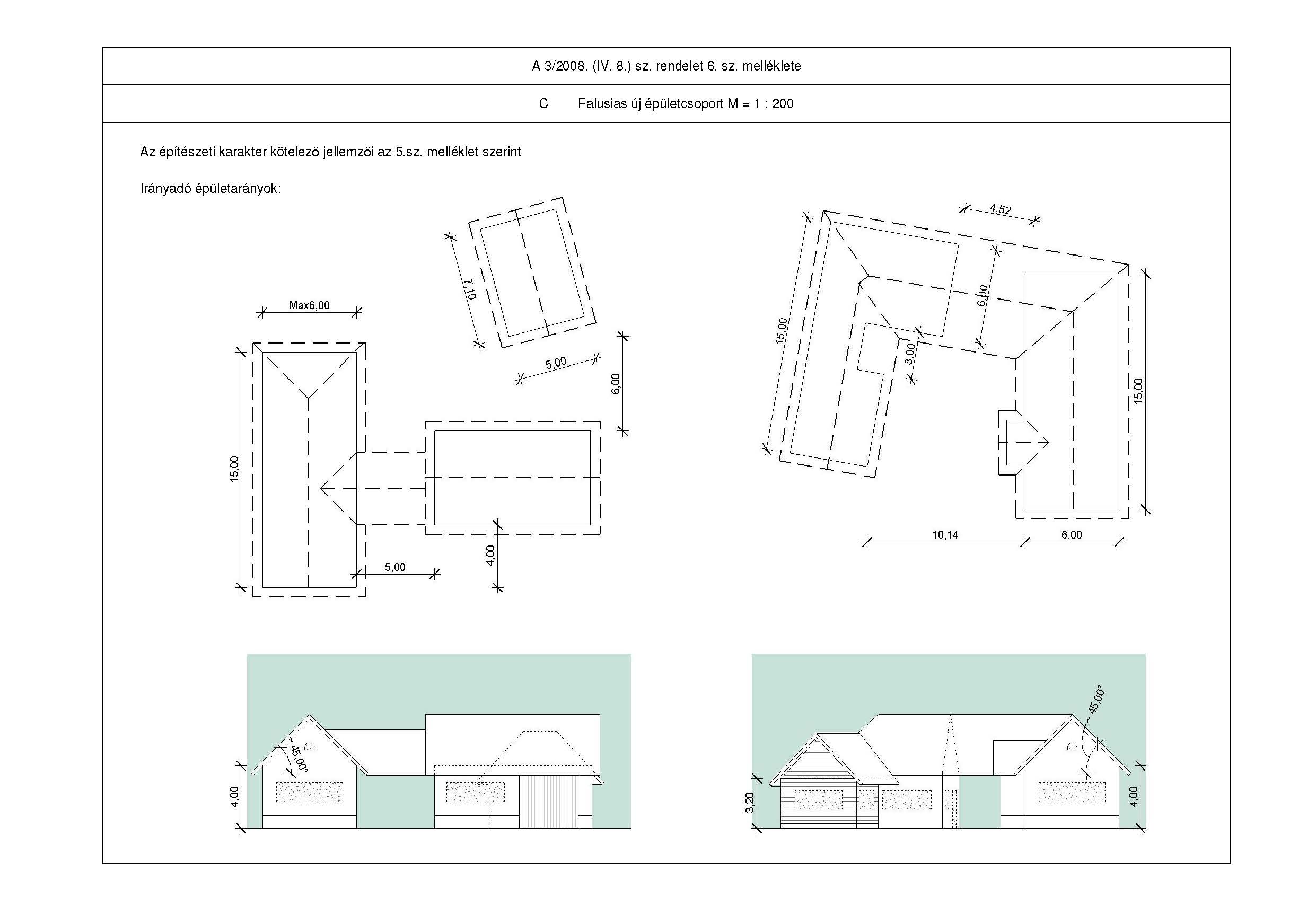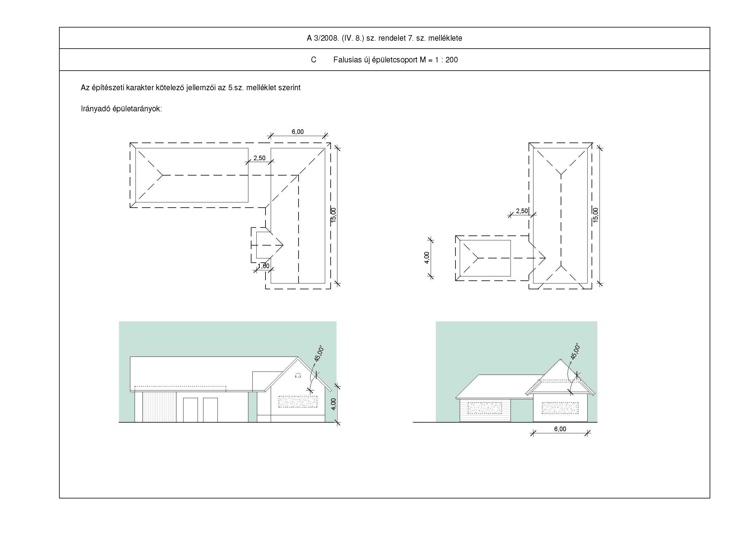 −Új lakó és gazdasági építmény tömegarányait, tetőformáját, anyaghasználatát, színezését e rendelet 2, 3, 4, 5 sz. mellékletének figyelembevételével.
