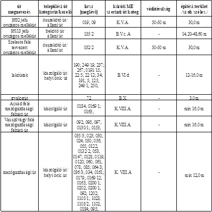 17. § A közlekedési és közmű területek kategorizálása, a biztosítandó építési területek szélessége: