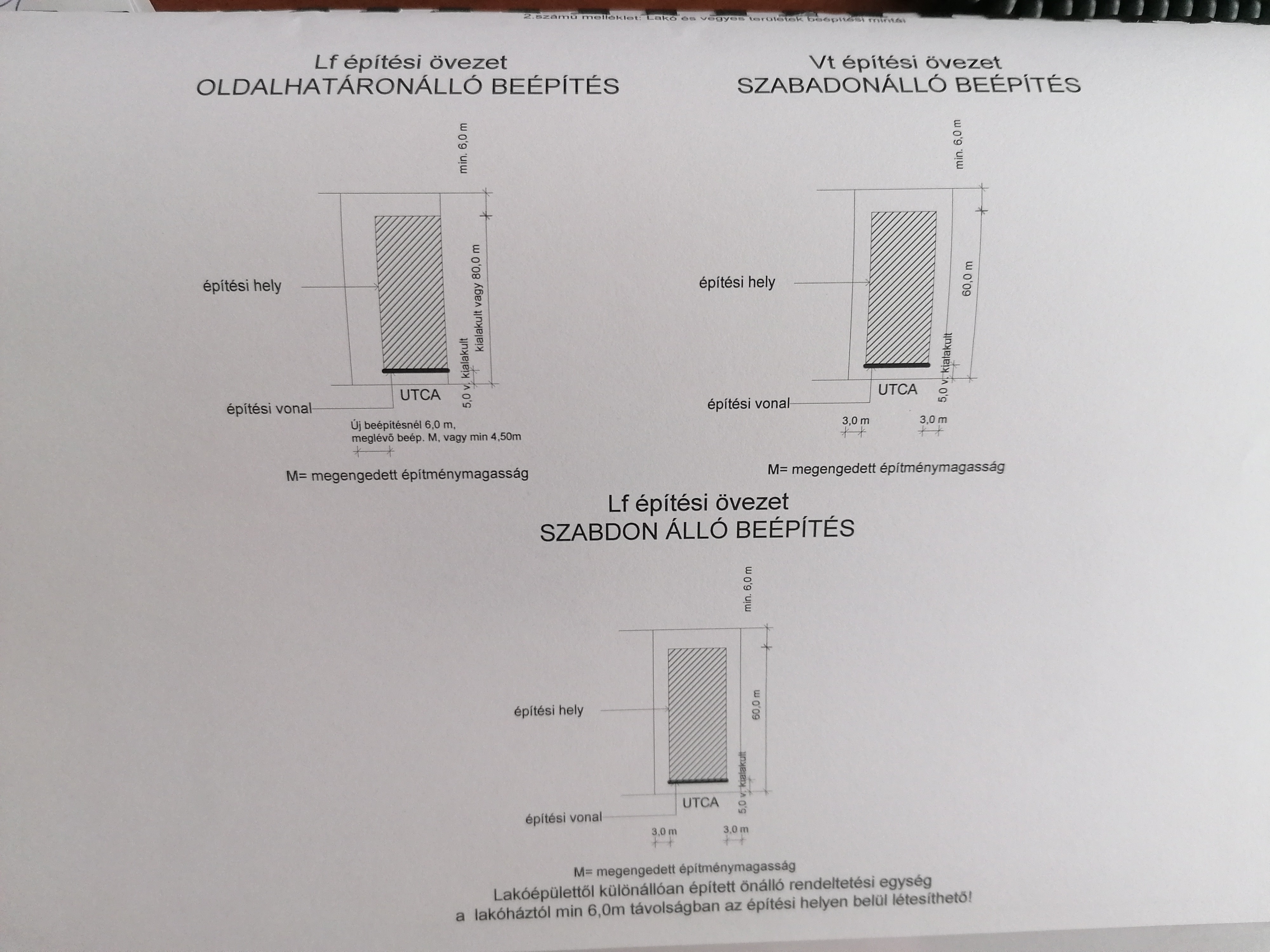(2) Épületeket a telken a 2. sz. mellékletben megadott, vonatkozó mintalap szerint építésre kijelölt helyen, ill. a szabályozási terven jelölt módon kell elhelyezni.