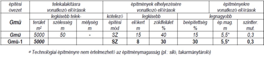 c) építési korlátozás: korlátozott funkciójú építési helyen nagylétszámú állattartásra alkalmas állattartó épület nem helyezhető el.