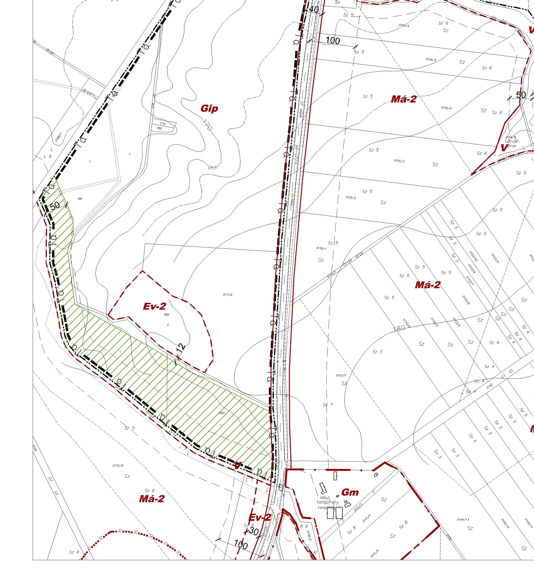 (6) [7]Az új közlekedési közterületek nyomvonala a terven ábrázolt úttengelytől 10,0-10,0 m-es sávban elmozdítható a rendezési terv módosítása nélkül, ha ezt a terepadottságok, a talajmechanikai állapotok, vagy a forgalomtechnikai megoldások és tulajdonjogi rendezések indokolttá teszik.