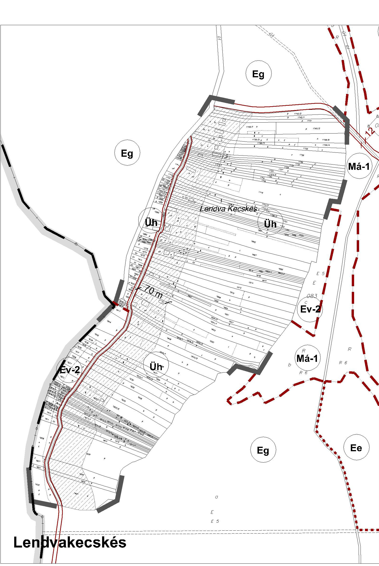 - Kiszolgáló és lakóút céljára történő lejegyzés[2]: új beépítésre szánt területek szabályozási vonallal lehatárolt területe.