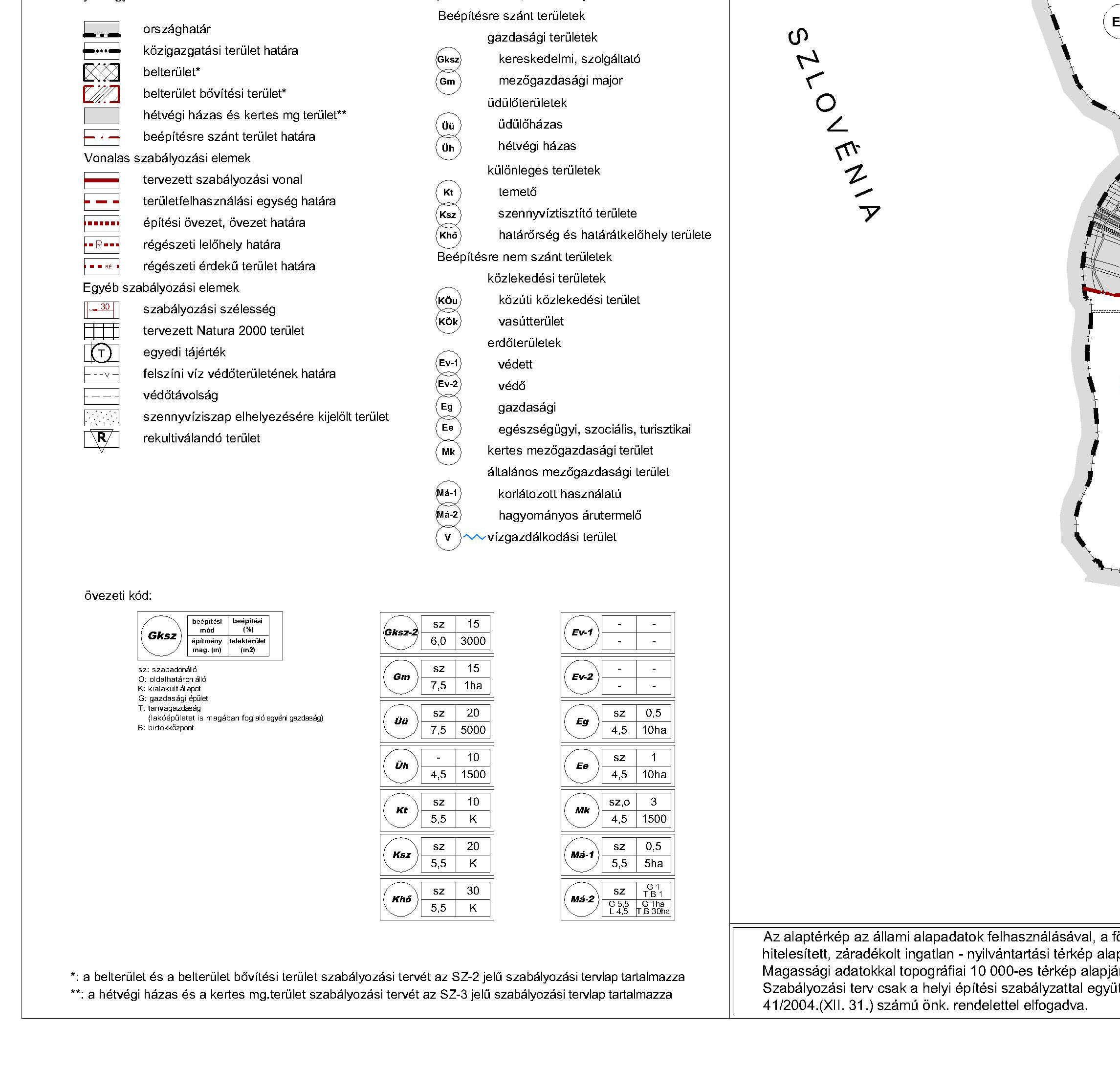 - építési övezet, övezet határa és előírásai,