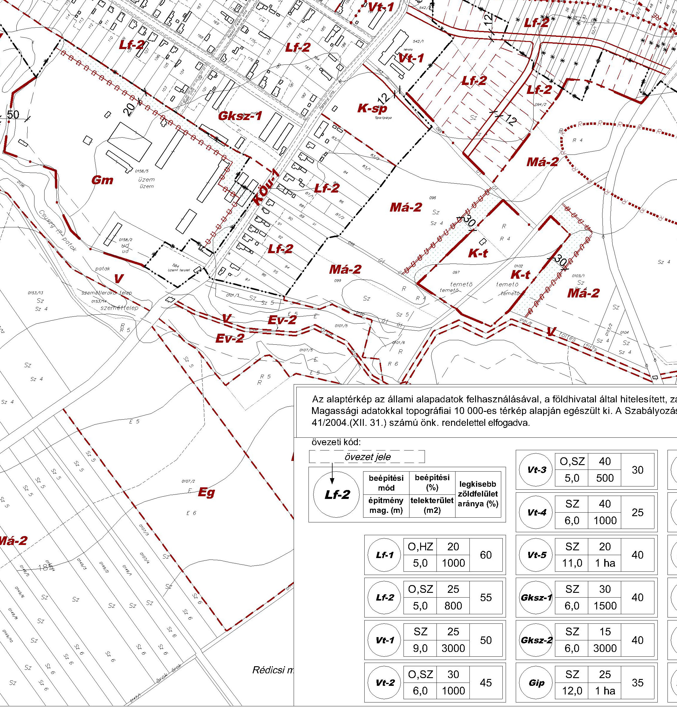 - építési övezet, övezet határa és előírásai,