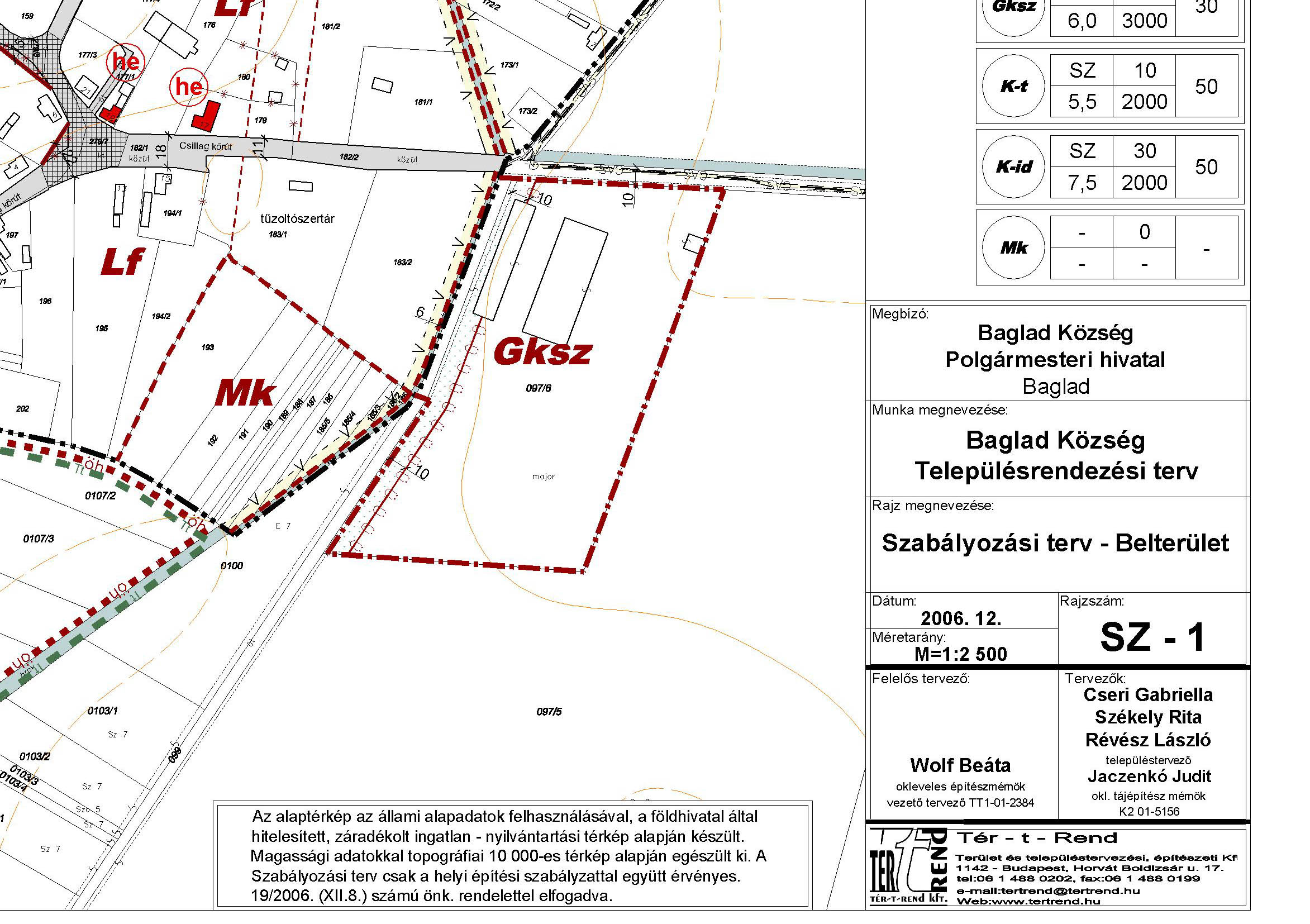 A TÉR-t-REND Kft. által 2005-2006-ban készített szabályozási tervlapja