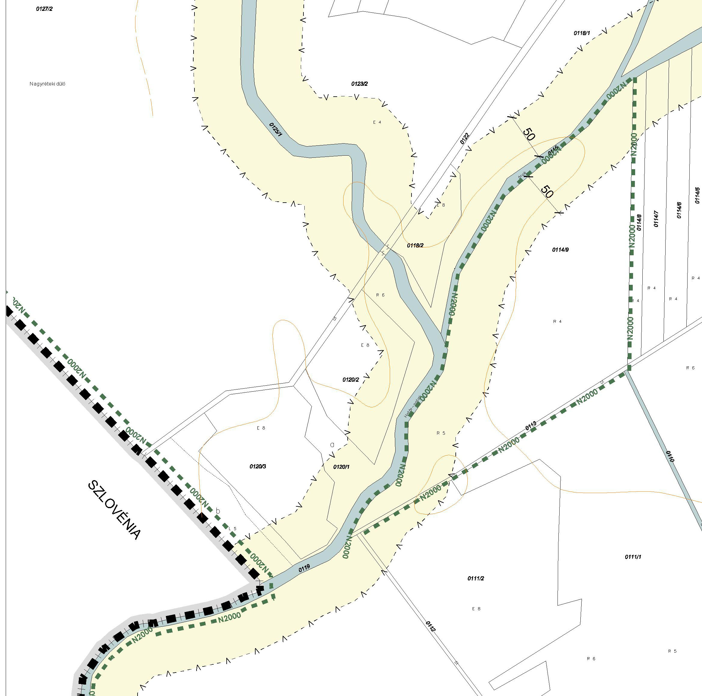 (2) Természetes és természetközeli állapotú vízfolyások mentén a vízfolyás mindkét partján, a telekhatártól mért 50-50 m széles területsávban épületek, építmények elhelyezése, a területsáv hasznosítása a vonatkozó természetvédelmi[10] és vízügyi jogszabályokban[11] foglaltak szerint történhet.