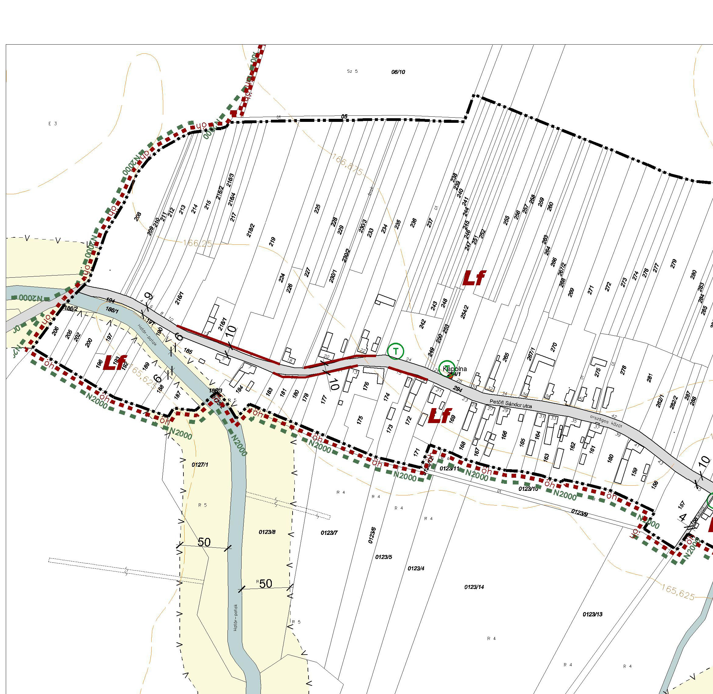- Kialakult, beépített terület: belterületen illetve beépítésre szánt területeken a telektömbben a telkek a földhivatali nyilvántartás szerint 75%-ban beépültek.