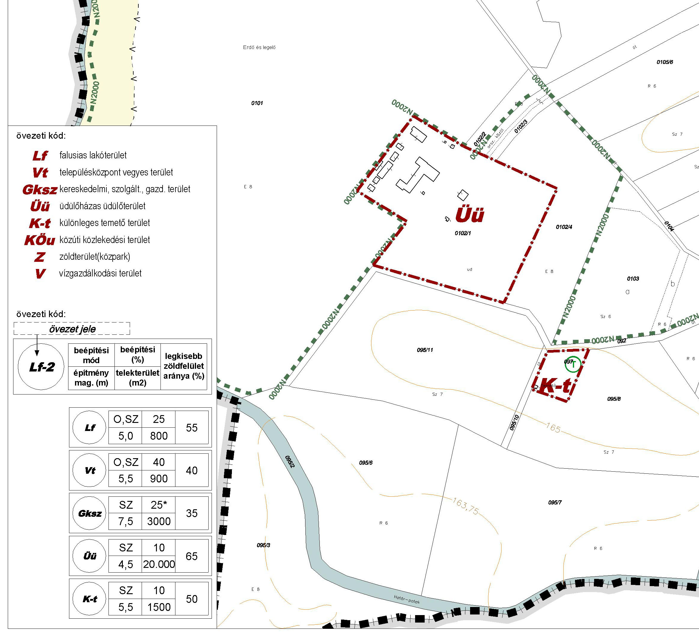 (1) A területen az egyes övezetekben meghatározott rendeltetésű építmények, illetve az ennek megfelelő funkciók helyezhetők el. Az övezetben meg nem határozott, és jelen rendelet, illetve az OTÉK alapján nem tiltott funkció elhelyezhetőségéről az építésügyi hatóság – a települési önkormányzat egyetértésével – a településrendezési szempontú elvi építési engedély alapján dönt, és határozza meg a létesítéssel kapcsolatos feltételeket. Az elvi építési engedélyben ki kell térni az építés által befolyásolt környezet vizsgálatára, a tervezett létesítmény zavaró környezeti hatások nélküli megvalósításához szükséges környezetvédelmi követelmények, feltételek meghatározására.[7]