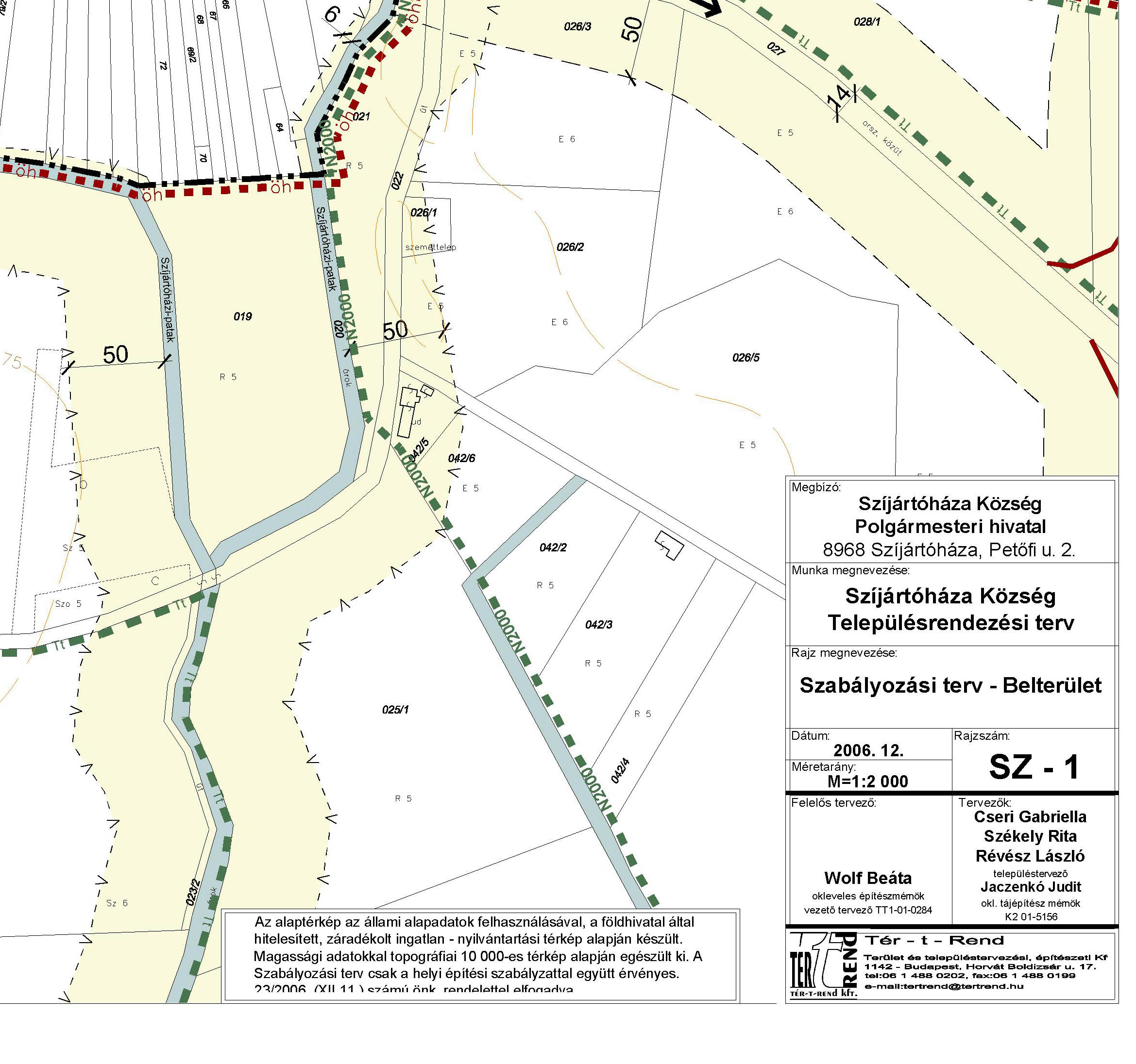 A TÉR-t-REND Kft. által 2006-ben készített szabályozási tervlapja
