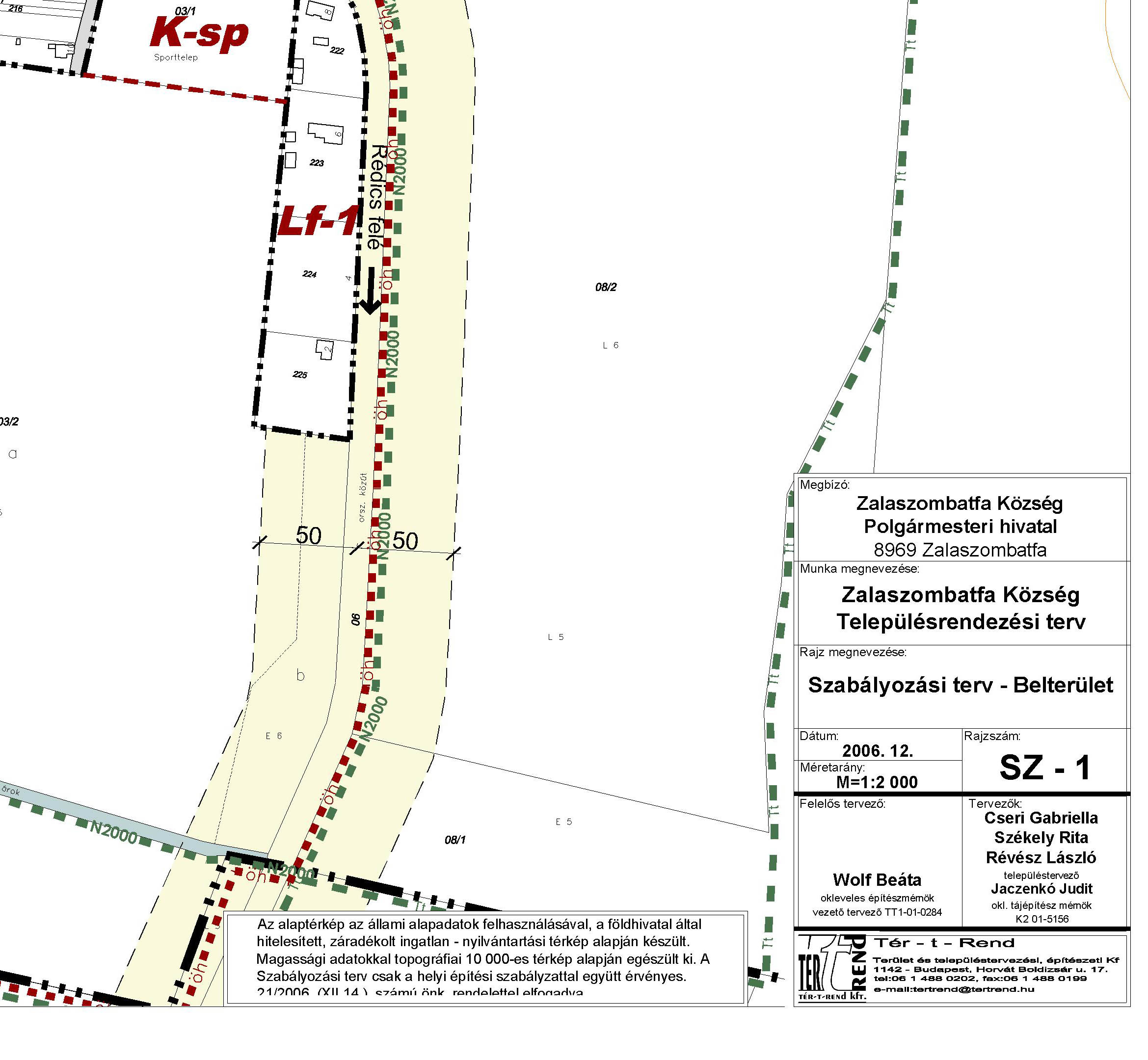 A TÉR-t-REND Kft. által 2005-ben készített szabályozási tervlapja