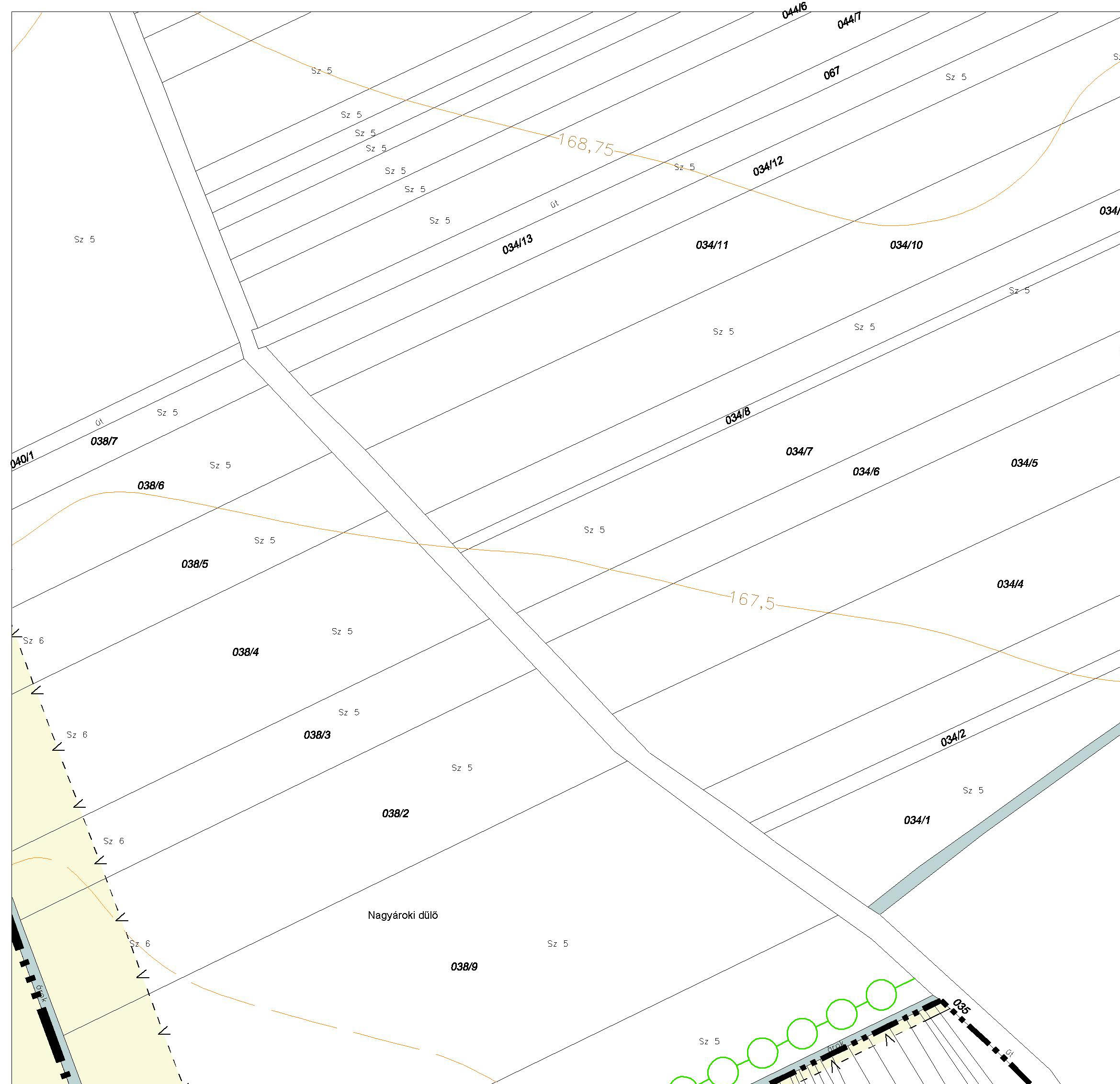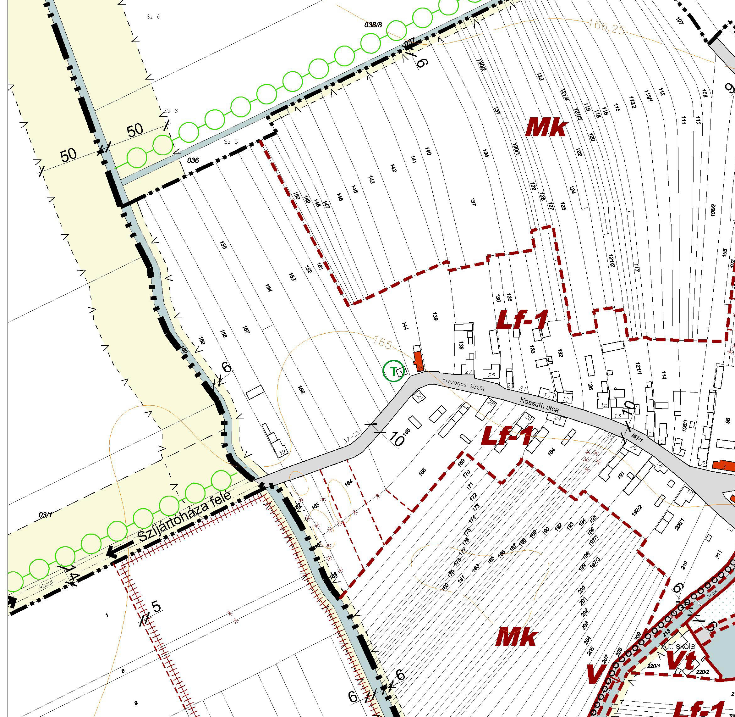 - Kiszolgáló és lakóút céljára történő lejegyzés[4]: új beépítésre szánt területek szabályozási vonallal lehatárolt területe.