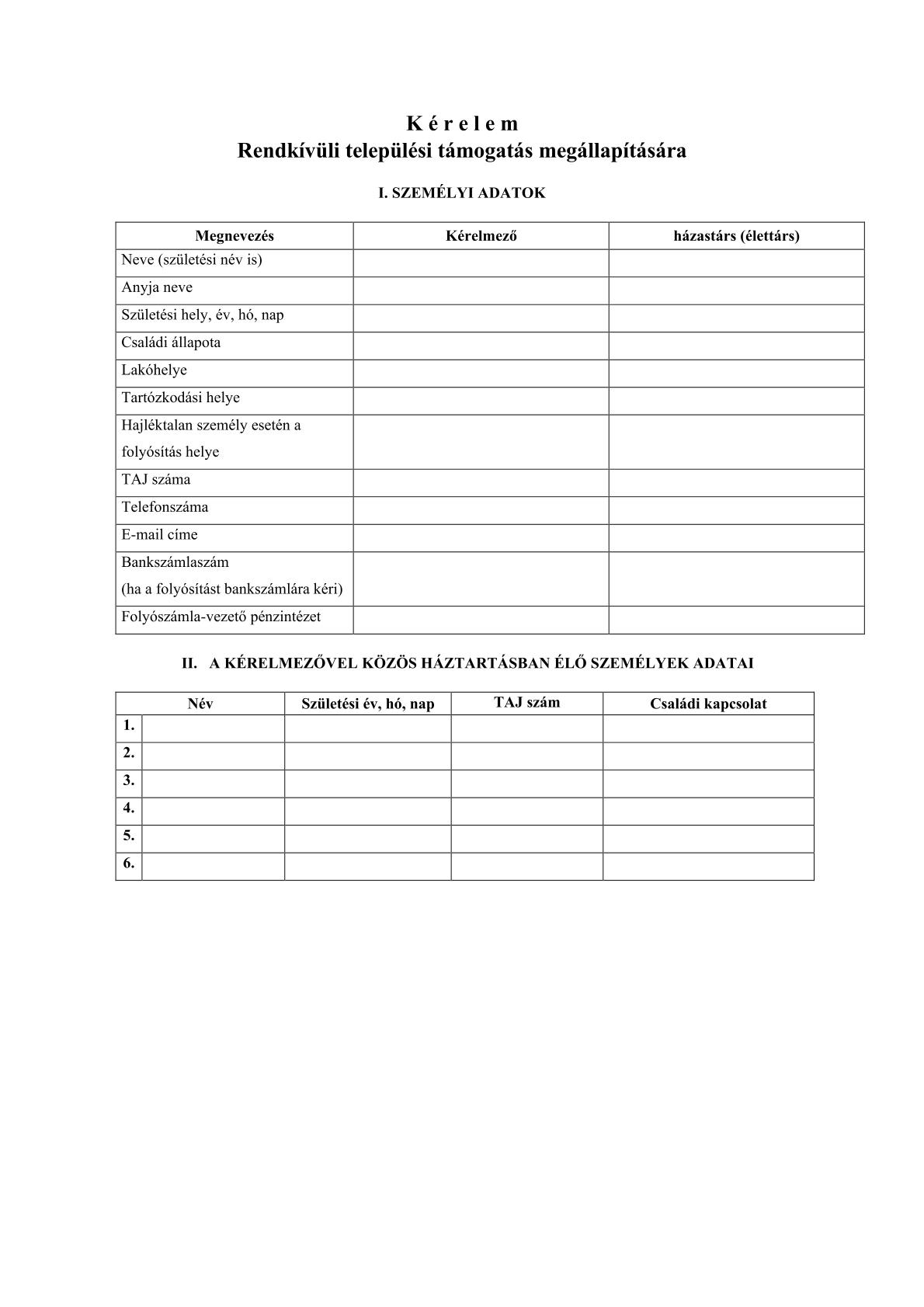 1. rendkívüli települési támogatás: Képviselő-testület,