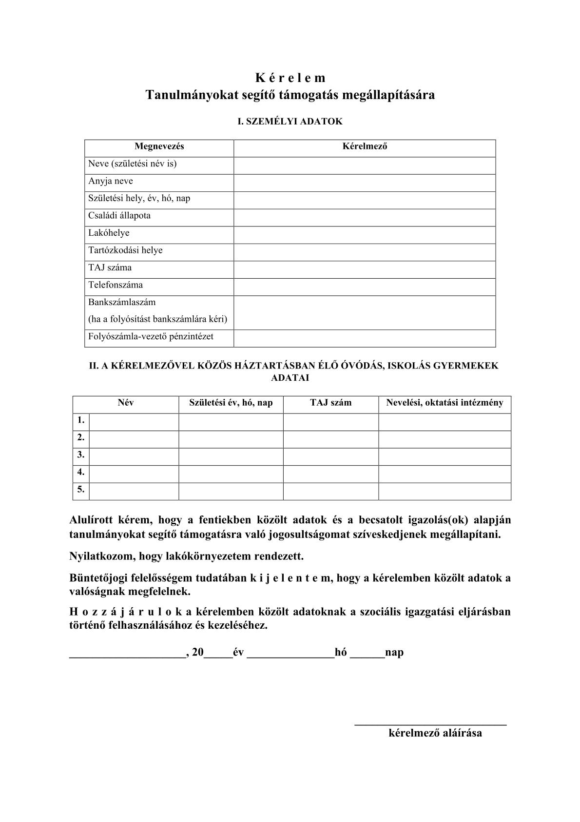 (8) A rendkívüli települési támogatás iránti kérelmet e rendelet 3. melléklete szerinti formanyomtatványon kell benyújtani, amelyhez mellékelni kell