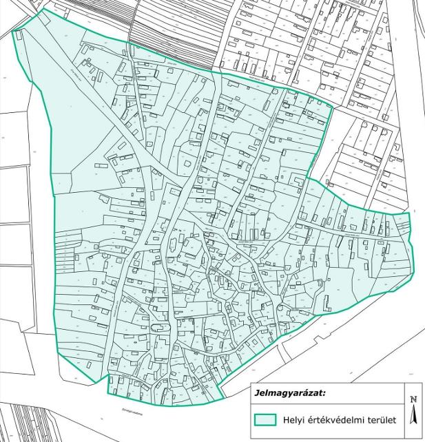 10. § (1) A 9. § (1) bekezdés a) pontjában meghatározott területen új épületeket, építményeket a meglévő állapothoz igazodóan kell elhelyezni és kialakítani, úgy hogy azok a történeti fejlődés során kialakult jelenlegi telekstruktúrát és helyi építészeti karaktert megőrizzék.