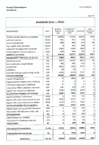 2. § (1) Az önkormányzat a 2016. évi költségvetésének