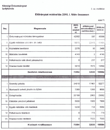 az önkormányzat 2016. évi költségvetéséről szóló 1/2016. (II.11.) önkormányzat rendelet módosításáról