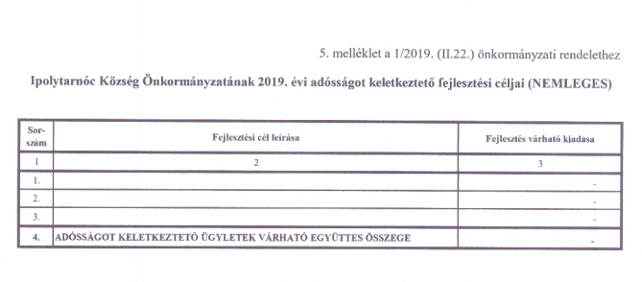 Ipolytarnóc Község Önkormányzat Képviselő-testületének 1/2019.(II.22.) önkormányzati rendelete