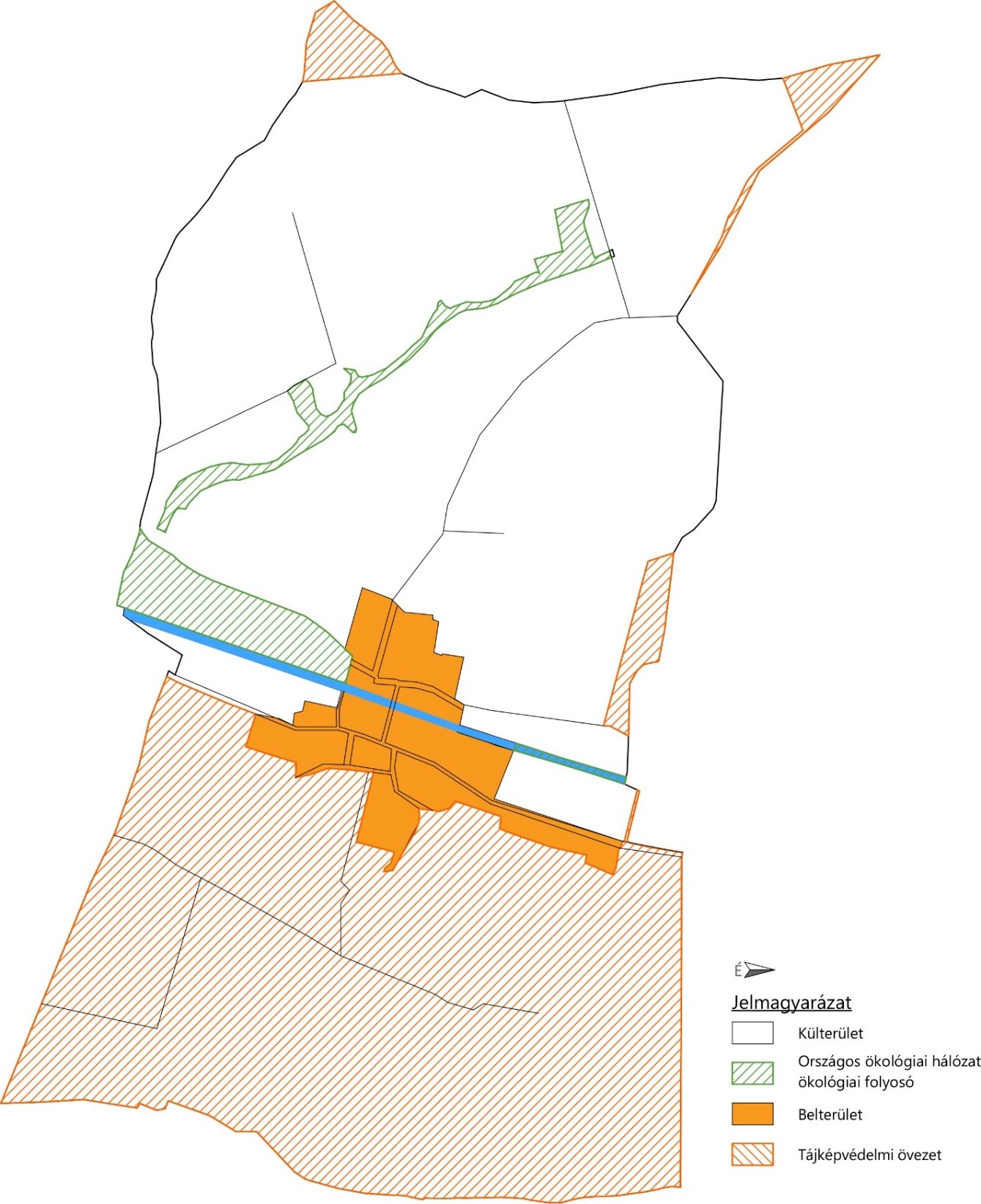 d) Táj- és természetvédelmi területek: tervezett természeti terület; országos ökológiai hálózat övezete (ökológiai folyosó); tájképvédelmi szempontból kiemelten kezelendő terület övezete, egyedi tájértékek.