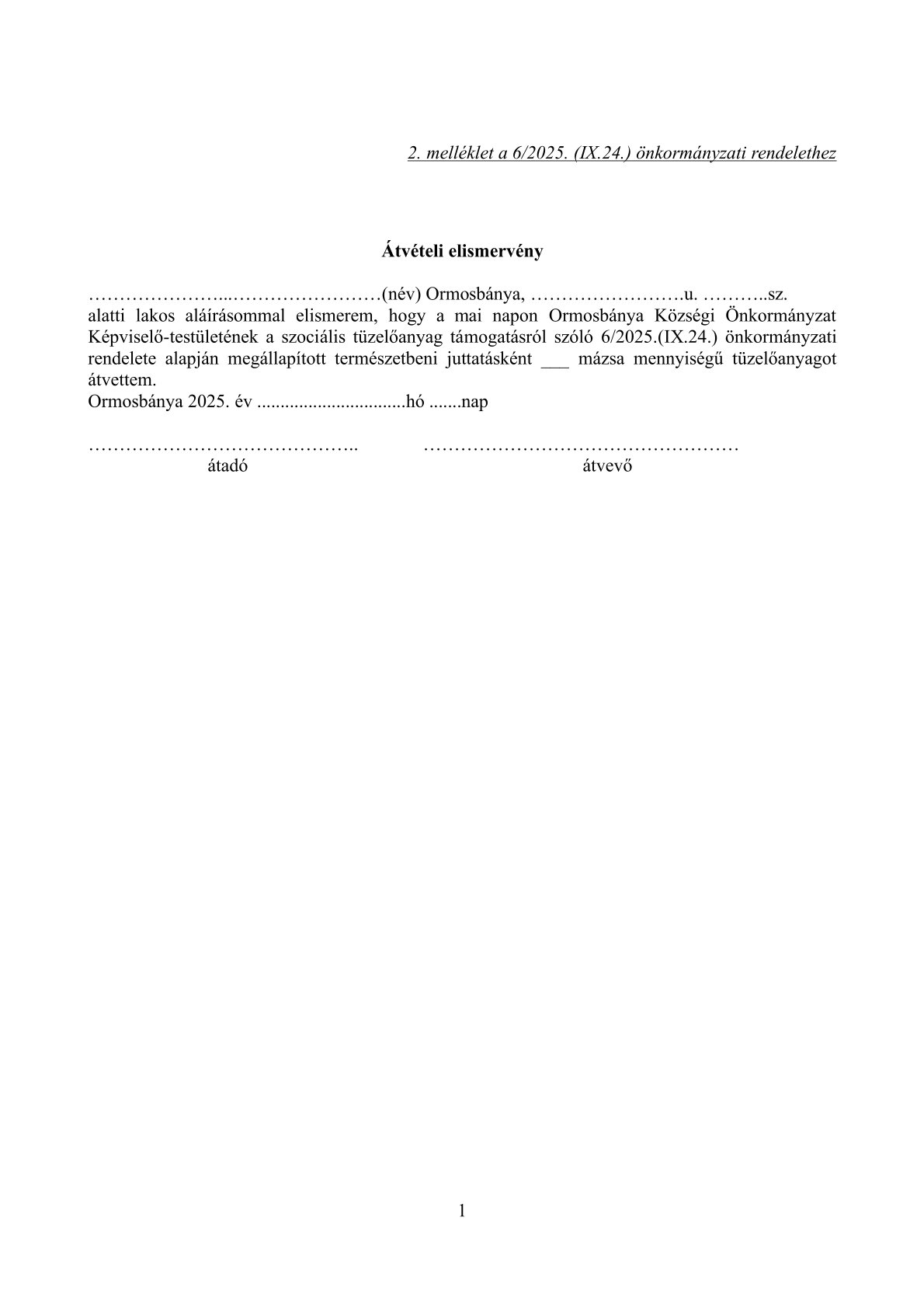 (5) A tüzelőanyag átvételét a jogosult a rendelet 2. mellékletét képező átvételi elismervény aláírásával igazolja.