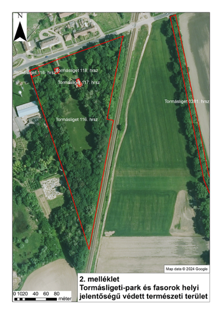 1. § (1) Tormásliget Község Önkormányzata Képviselő-testülete fenntartja a Tormásliget Község Önkormányzatának, a Tormásligeti-park és fasorok védetté nyilvánításáról szóló 2/1995. (III.2.) számú rendeletével védetté nyilvánított Tormásligeti angolpark és magyar kőris fasor helyi jelentőségű védett természeti területek védettségét.