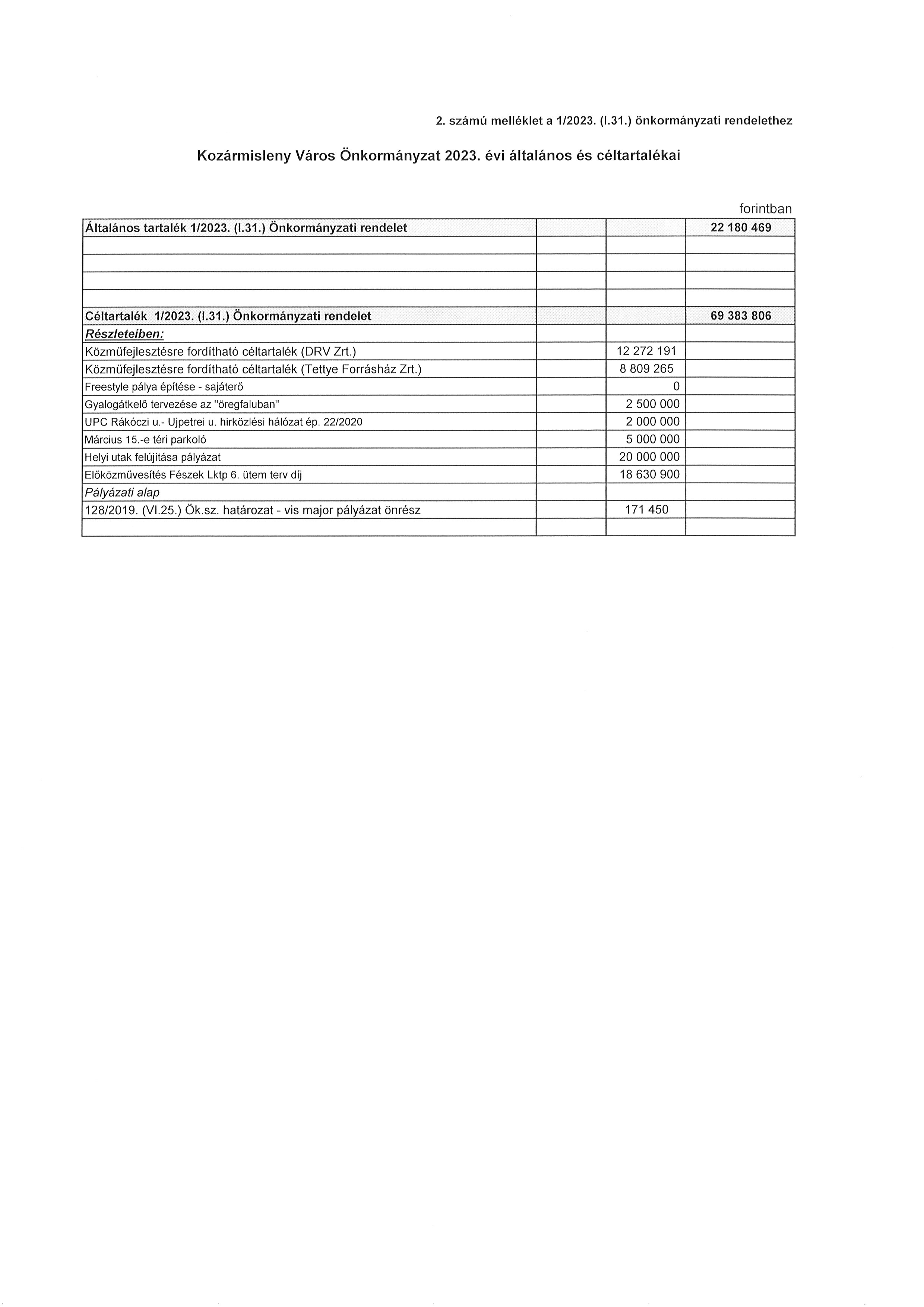 2. melléklet az 1/2023. (I. 31.) önkormányzati rendelethez