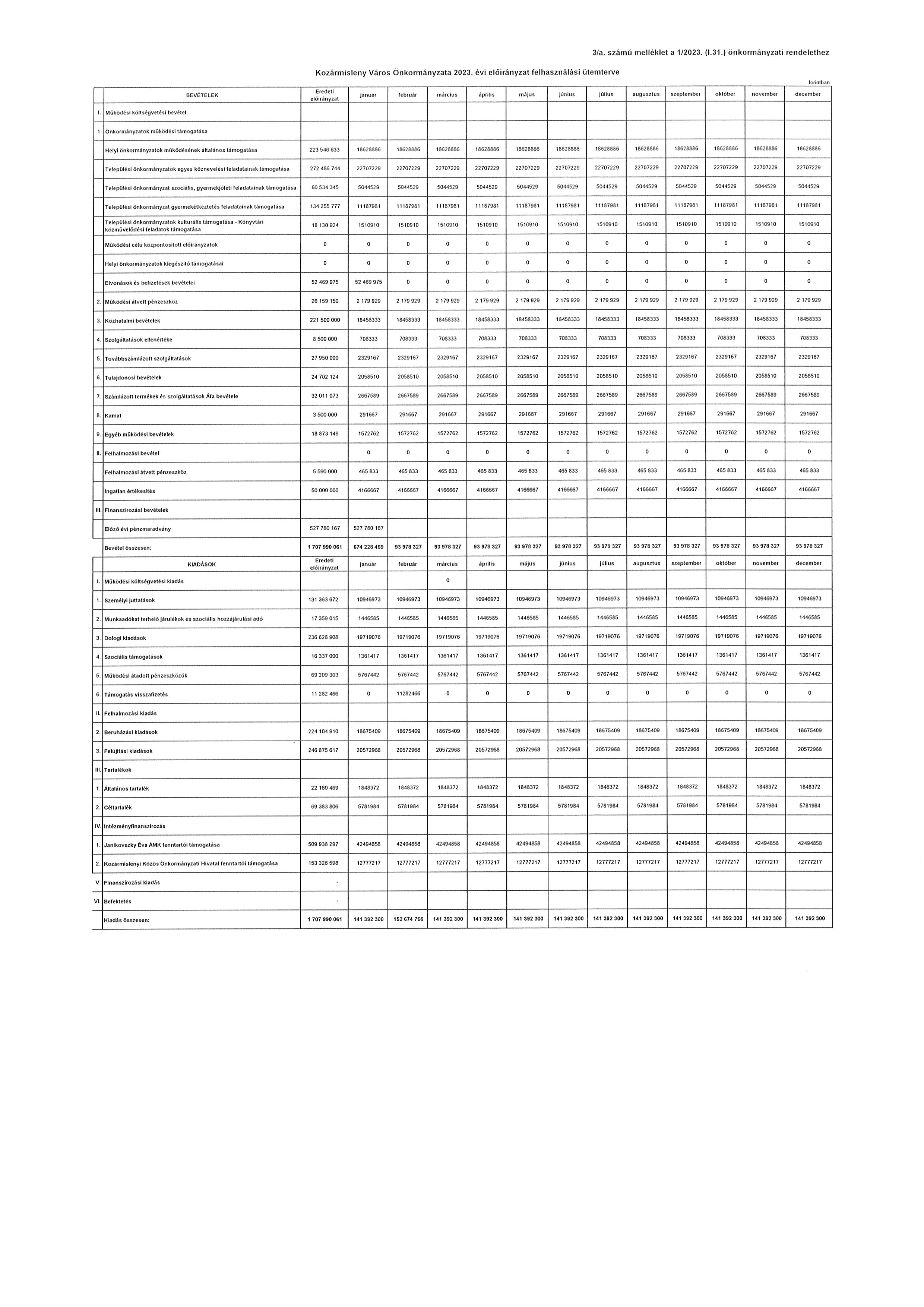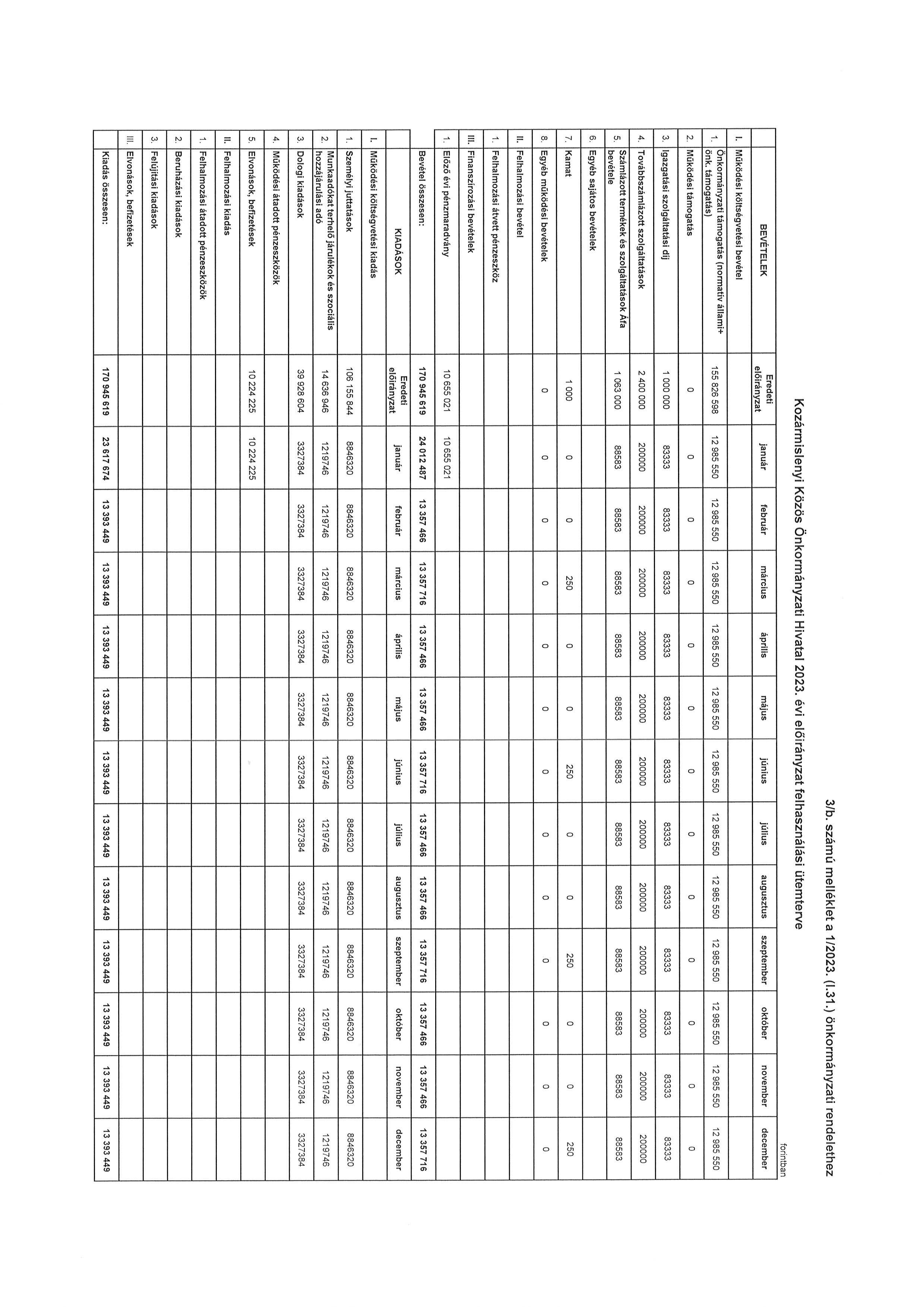 3. melléklet az 1/2023. (I. 31.) önkormányzati rendelethez