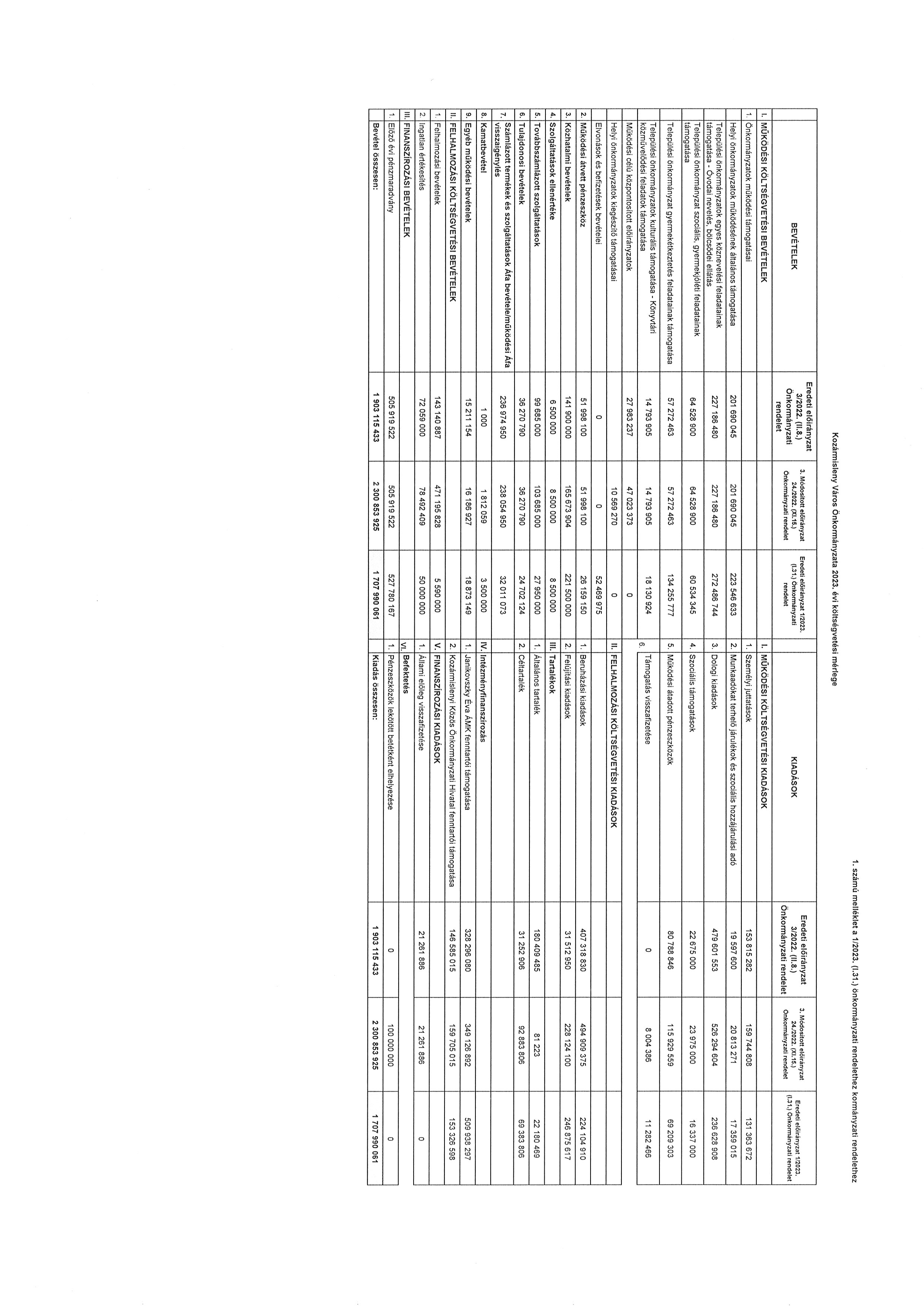 2. § A képviselő-testület az önkormányzat 2023 évi költségvetési kiadási és bevételi fő összegét 1 707 990 061 forintban állapítja meg.