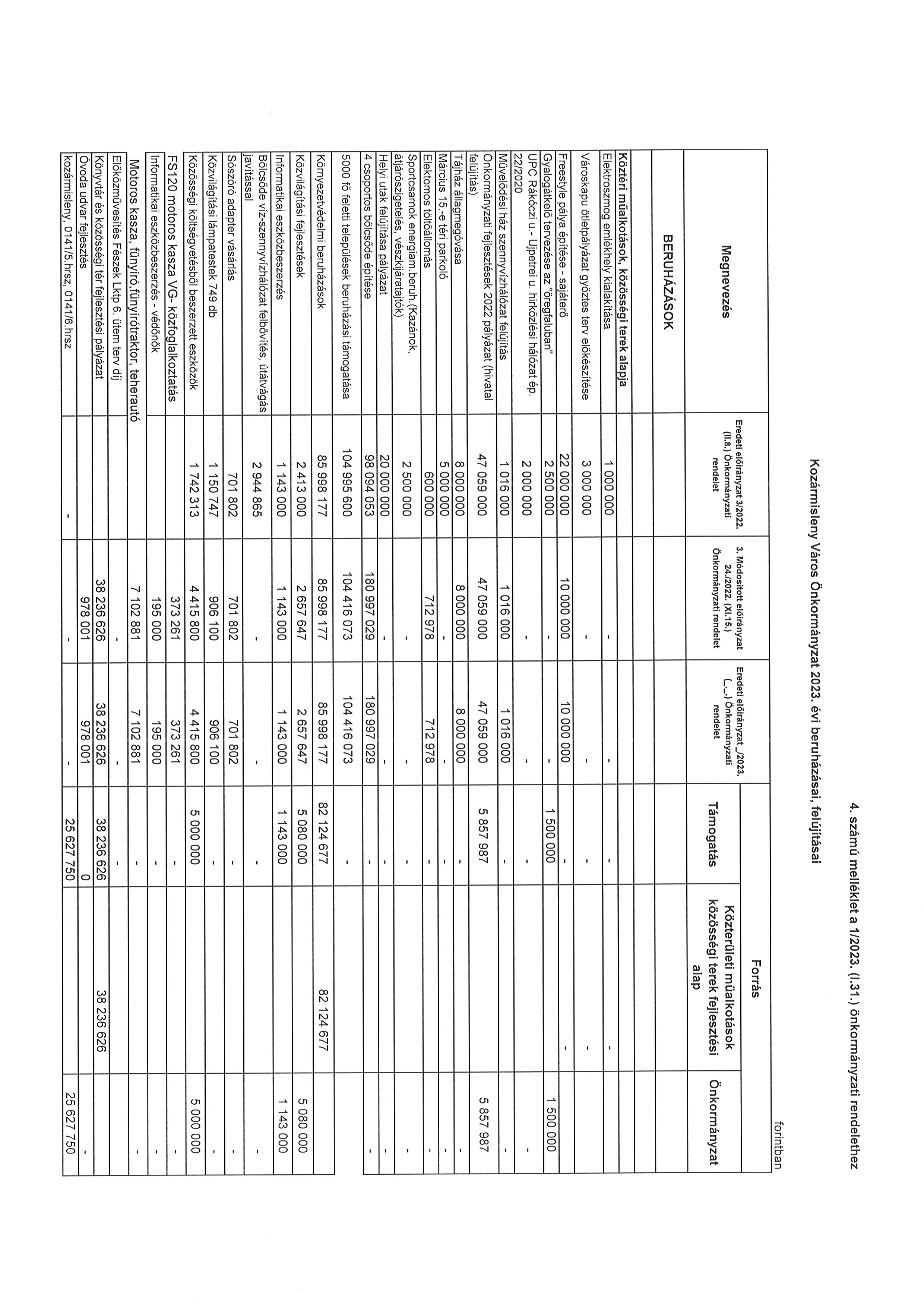 4. melléklet az 1/2023. (I. 31.) önkormányzati rendelethez