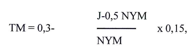 ahol a J a jogosult háztartásában egy fogyasztási egységre jutó havi jövedelmet, az NYM pedig a szociális vetítési alap összegét jelöli. A TM-et századra kerekítve kell meghatározni.