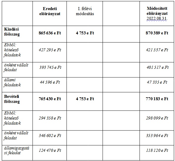 1. § (1) A Képviselő-testület a 2022. évi költségvetésének előirányzatait az alábbiak szerint állapítja meg: