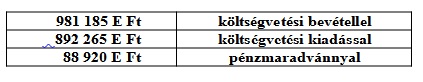 (2) Az (1) bekezdésben meghatározott költségvetési bevételeken és kiadásokon felül az előző évekből hozott hosszú lejáratú hitelfelvétel visszafizetésére került sor 19 936 e Ft értékben, és ezzel letörlesztettük a fennálló hitel tartozásunkat.