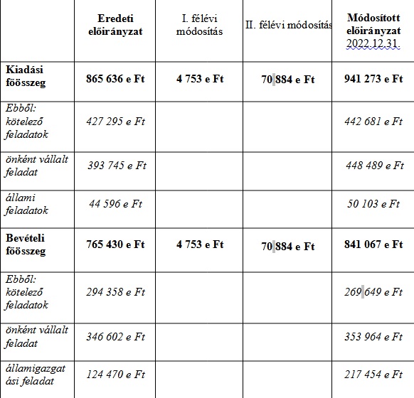 1. § (1) A képviselő-testület a 2022. évi költségvetésről szóló 2/2022. (III.1.) önkormányzati rendelet (továbbiakban: Rendelet) 1. § (1) bekezdése helyébe az alábbi rendelkezés lép: A 2022 . évi költségvetésének előirányzatait az alábbiak szerint állapítja meg: