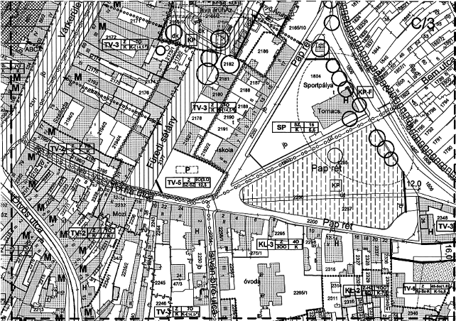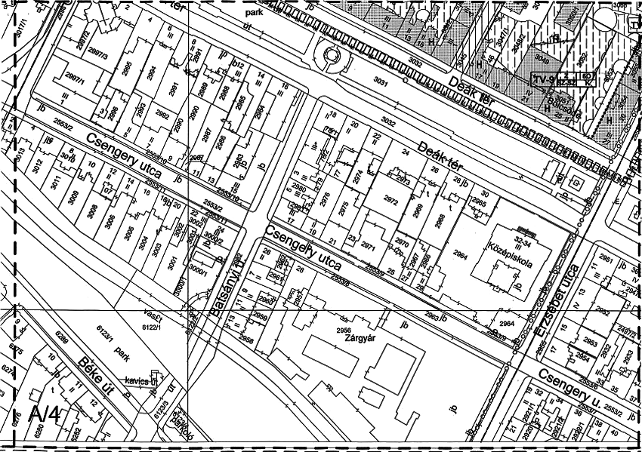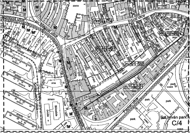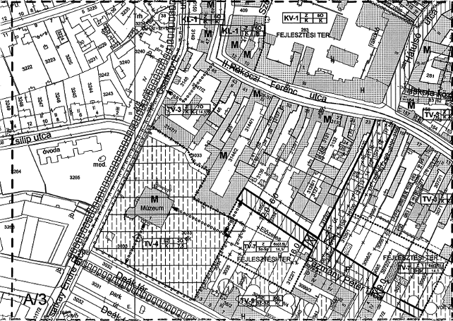 a) Rákóczi utcai tömb: 3136, 3135/2, 3134, 3128/1, 3127, 3122/1, 3121, 3118, 3106, 3107, 3108, 3109, 3110, 3111, 3112, 3113, 3114, 3115, 3116, 3117, 3118, 3119, 3105/1, 3105/2, 3099/1, 3098/2, 3085, 3072/2, 3070, 3050/2 hrsz.