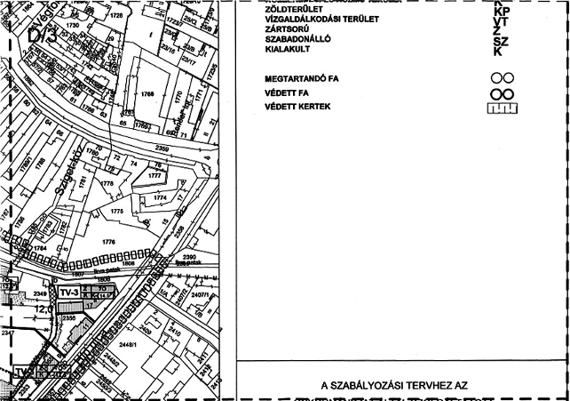 (6) Az övezeti előírásokban a „K” a kialakult állapotot, az „sz-sz” a szabályozási terv szerint kialakítandót jelöli. Beépítetlen foghíjteleknél a „K” jel a szomszédos, beépített telkek esetében kialakult állapotot jelenti.