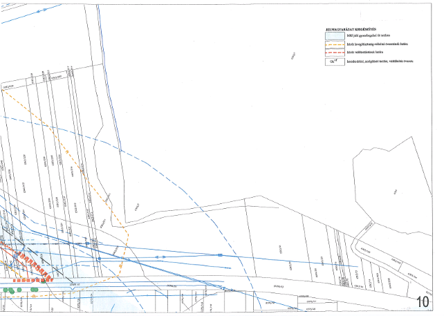 (8) A meglevő gázfogadók 10-10 m-es biztonsági övezete az érvényes előírások szerint biztosítandó. A nagynyomású gáz gerincvezeték védőtávolsága a vezeték tengelyétől merőlegesen mért 20-20 m. A nagyközép nyomású vezetékeknél a védőtávolság meglévő vezeték esetében 9-9 m, új vezeték létesítés esetén 5-5 m.